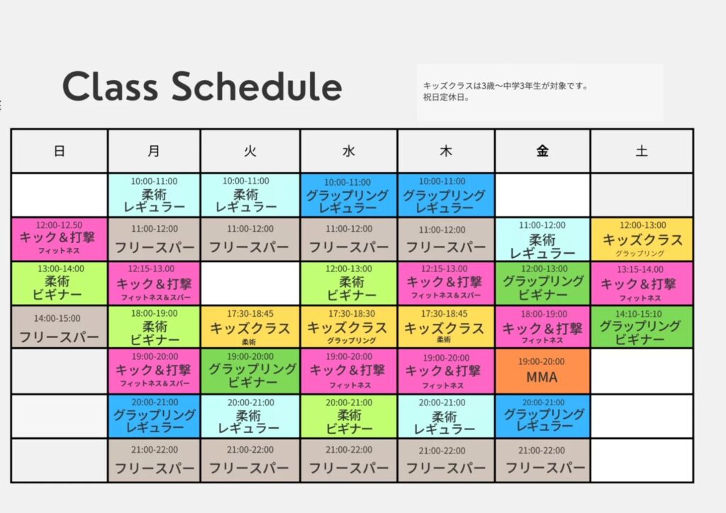 ブラジリアン柔術・グラップリングクラス・MMA(緑枠)の受講が可能です。